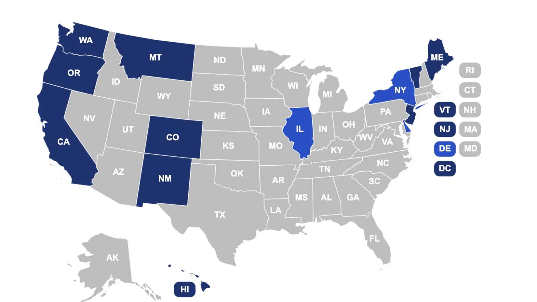 New States: DE, IL, NY